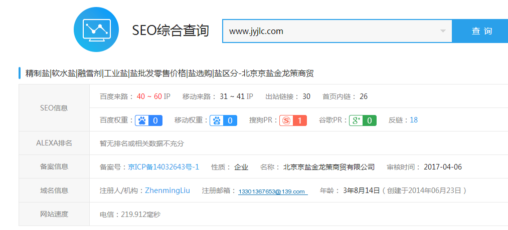 二、网站初始排名:(查询日期:2017/10)