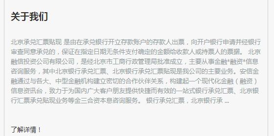 5.站在搜索引擎的角度来说,网站的本质就是服务用户,解决用户的问题,因此搜索引擎特别注Z,具有使用价值的高质量原创文章,为迎合搜索引擎,也为了吸引更多用户浏览我们的网站,网站应定时发布一些有实用价值,可以解决顾客事件问题的文章,如:承兑汇票如何贴现、承兑汇票如何挂失、承兑汇票怎样辨别真伪等问题。